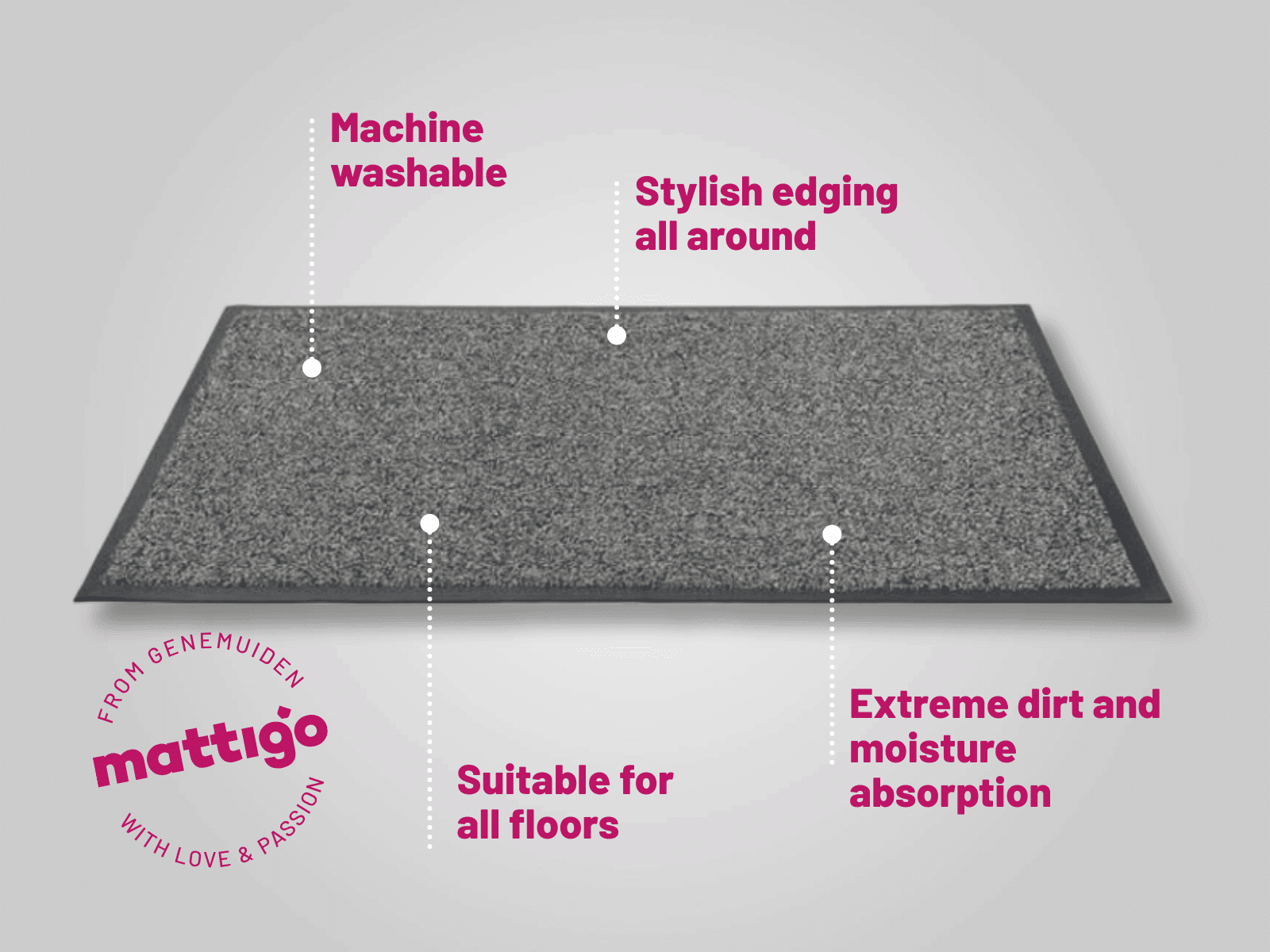 To make your indoor mat as effective as possible, an outdoor mat is essential. It keeps coarse dirt outside, so indoors you only have to deal with moisture and remaining dirt.