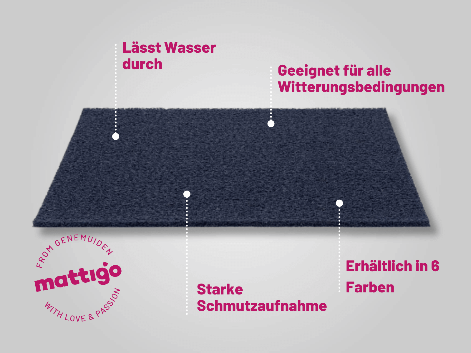 Damit deine Innenmatte möglichst effektiv wirkt, ist eine Außenmatte ein Muss. Sie hält groben Schmutz draußen, sodass du drinnen nur noch mit Feuchtigkeit und Restschmutz zu tun hast.