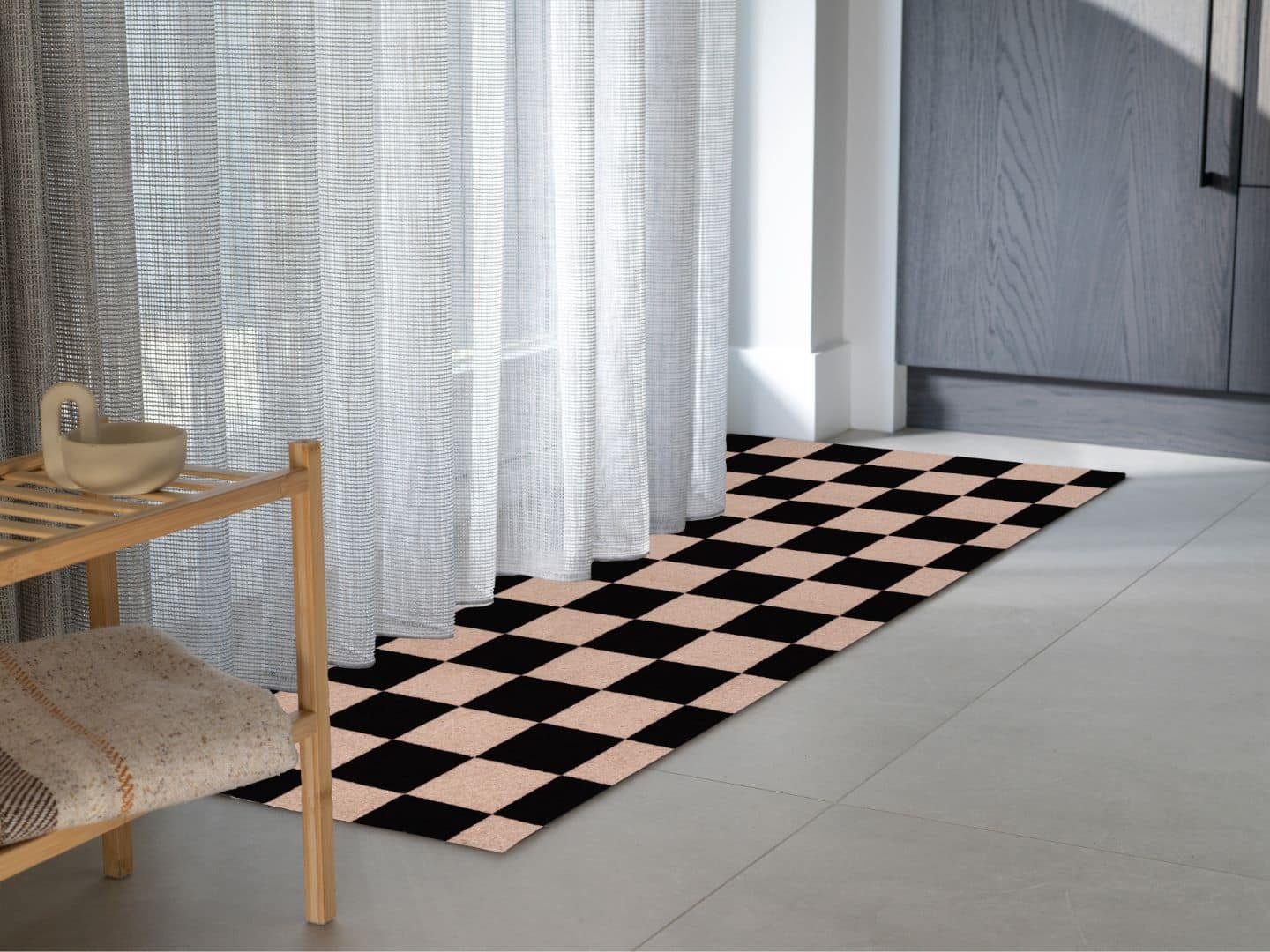Minimalist? Nope. Pixel Perfect is bursting with color and pattern – pure good vibes. This colored doormat channels a pixelated checkerboard and gives a playful nod to the clutter core trend. Its bold colors and dynamic lines make it perfect for outspoken interiors, but it also brings a fun surprise to more neutral spaces. A fresh pop of personality at your doorstep. Available in various sizes.