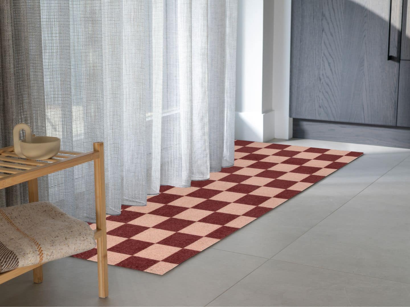 Minimalist? Nope. Pixel Perfect is bursting with color and pattern – pure good vibes. This colored doormat channels a pixelated checkerboard and gives a playful nod to the clutter core trend. Its bold colors and dynamic lines make it perfect for outspoken interiors, but it also brings a fun surprise to more neutral spaces. A fresh pop of personality at your doorstep. Available in various sizes.