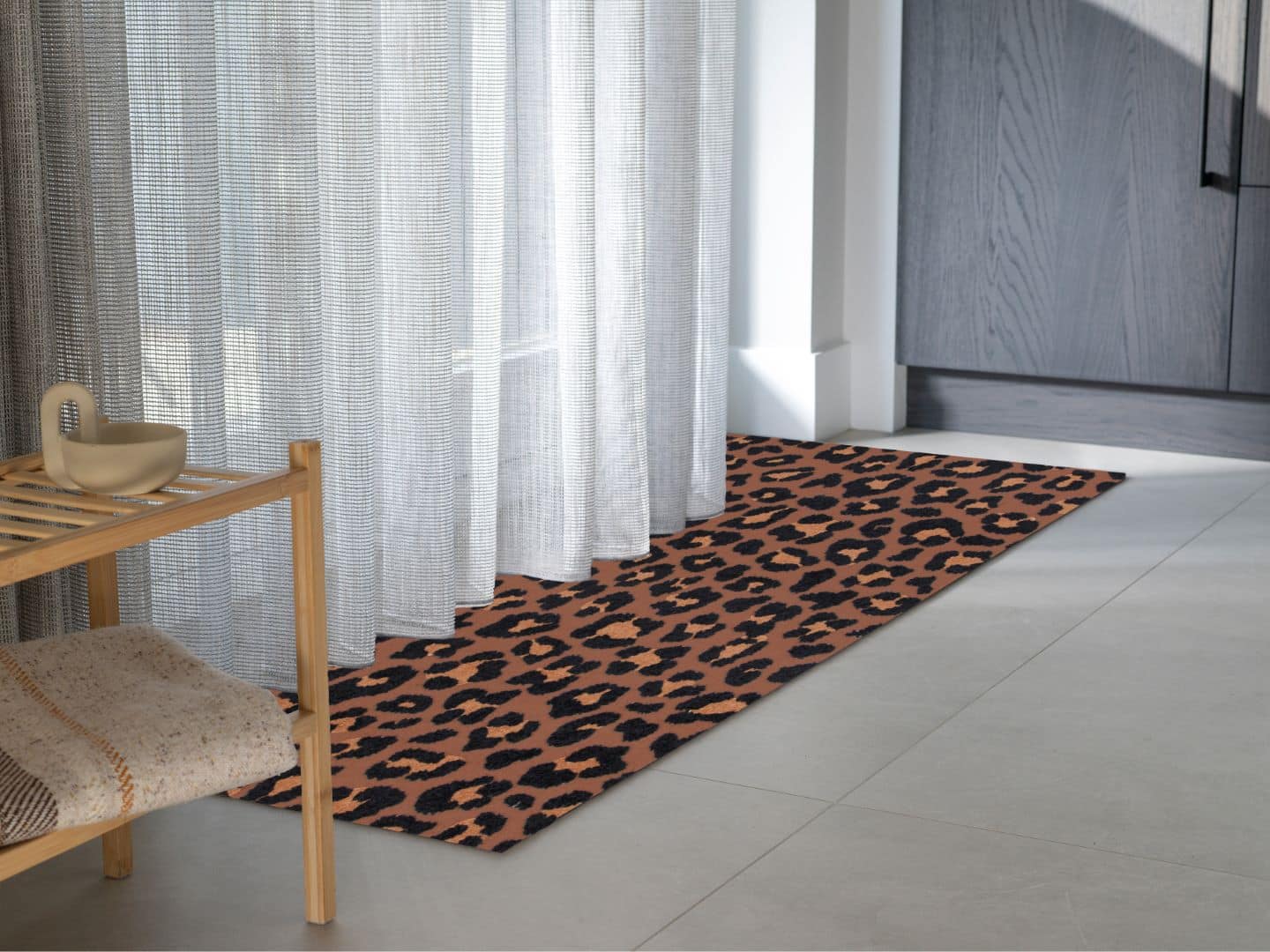 From soft neutrals to bold statements – Pretty Panther Print puts your entrance in the spotlight. This panther print doormat isn’t shy, but blends effortlessly into calmer spaces too. Made of 100% cotton: soft underfoot, tough on moisture. Thin, sleek, and snug to the floor. Available in three sizes – always a match. A stylish doormat with a wild edge. Meow.