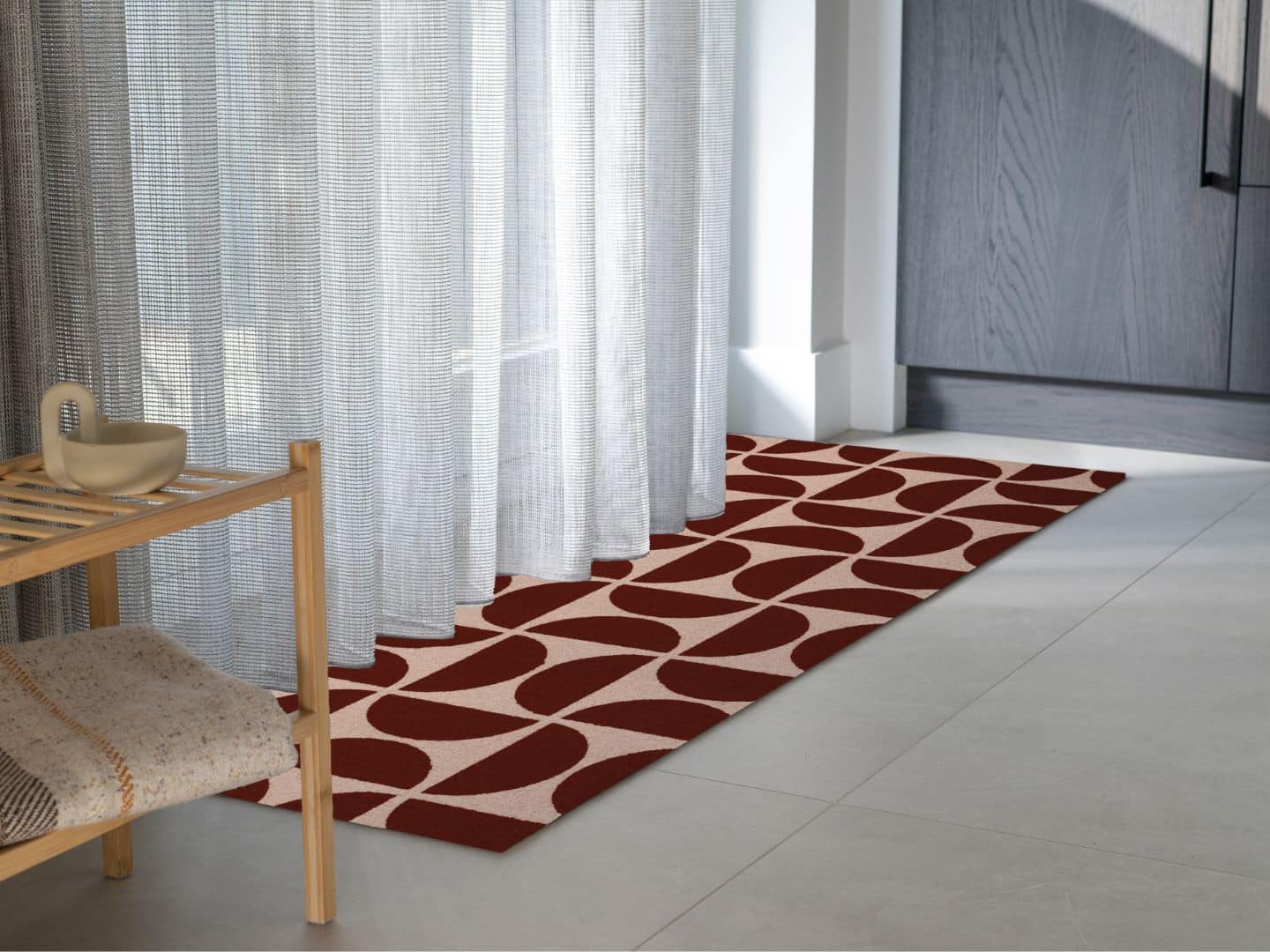 Looking to bring a touch of vintage into your home? Retro Vibes channels the best of the past into the now. With its graphic pattern and mellow color combo, this colored doormat is a gentle throwback to the seventies. Ideal for lovers of curves, retro charm, and a hint of playfulness in the hallway. Fits any entrance, suits any style. Available in three sizes – whichever you choose, your entryway gets an instant character boost.