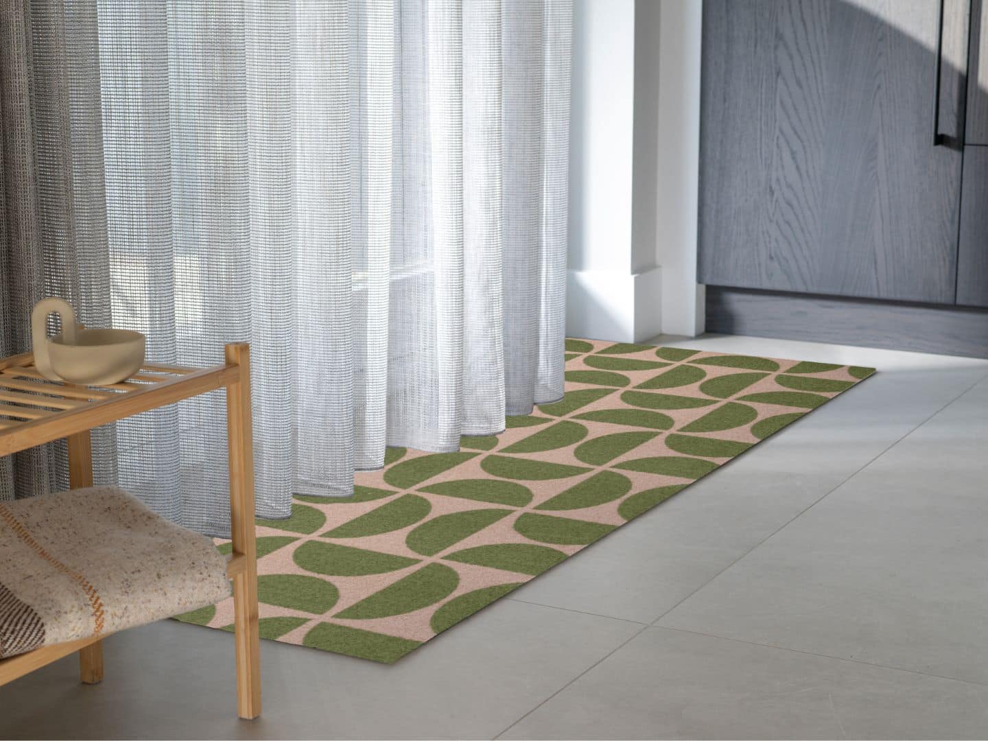 Looking to bring a touch of vintage into your home? Retro Vibes channels the best of the past into the now. With its graphic pattern and mellow color combo, this colored doormat is a gentle throwback to the seventies. Ideal for lovers of curves, retro charm, and a hint of playfulness in the hallway. Fits any entrance, suits any style. Available in three sizes – whichever you choose, your entryway gets an instant character boost.