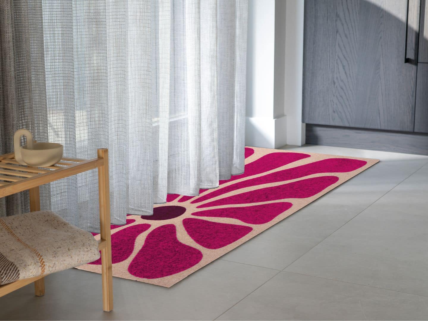Need a little more joy at home? Wildflower brings instant cheer. This vibrant doormat bursts with bold blooms, a playful nod to the seventies that makes your hallway pop. The lively colors of this trendy doormat offer a warm welcome – like stepping into summer, every single day. Perfect for color lovers, or anyone looking to brighten up a neutral space. Available in various sizes. Groovy vibes included, naturally.