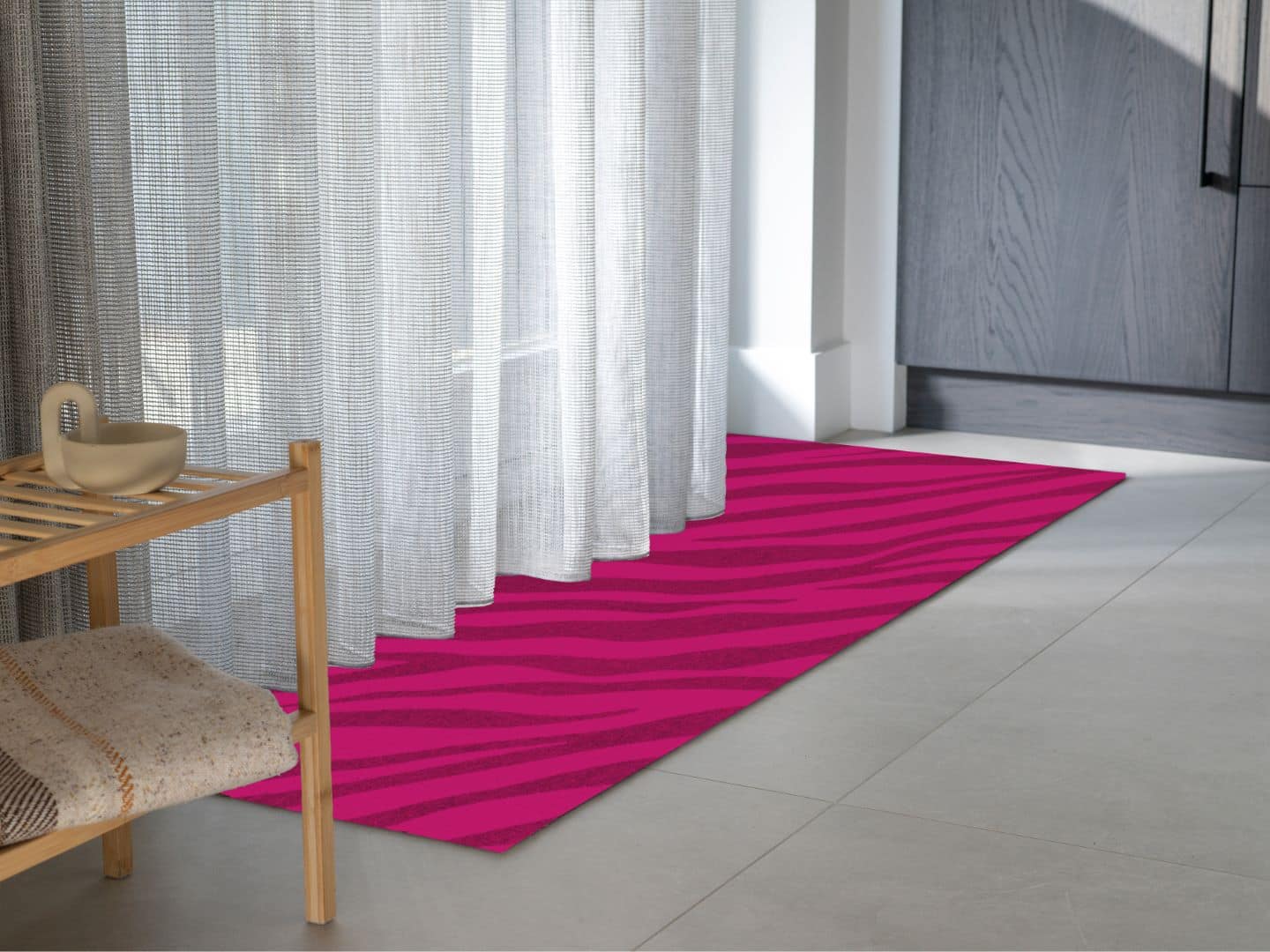 Zebra is the new black and white. With the Wildline entrance mat, your hallway gets a style boost, starting at the doorstep. This eye-catching trendy doormat features a playful zebra print and comes in either subtle tones or fresh, vibrant colors. Made from 100% cotton: wonderfully soft, thin, and surprisingly absorbent. Choose from three sizes: compact, generous, or just that little bit bigger. With Wildline, your hallway or entrance gets an instant wow factor.